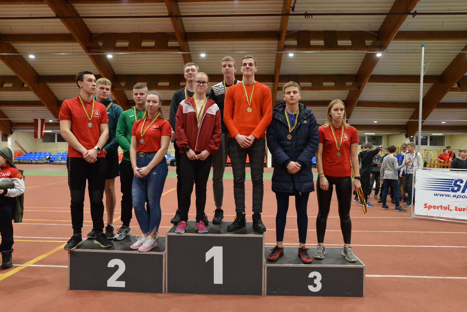 Geriau Panevėžio sporto centro auklėtiniams sekėsi pirmą kartą organizuotose estafečių rungtyse. Komandą sudarė keturi sportininkai (trys vaikinai ir mergina). Kiekvienas dalyvis turėjo bėgti 100m., tuomet daryti 10 atsispaudimų, vėl bėgti 100 m. ir šokinėti su šokdyne 20 kartų ir tik po šokinėjimo perduoti estafetės lazdelę. Estafetės sulaukė didžiulio susidomėjimo ir smagu, kad čia mums sekėsi geriau nei individualiose rungtyse.
