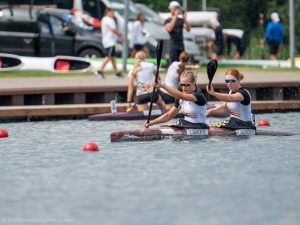 Rezultatai. 1000 distancija. Dviviete baidare pirma vieta – Kamilė Railaitė ir gimnazistė Kamilė Čiškauskaitė, antra vieta – Indrė Savickytė su gimnaziste Gabija Bakaite ir Karolis Laskovas su Gintaru Laskovu, trečia vieta – Domantas Gritėnas su gimnazistu Benediktu Kebliu.