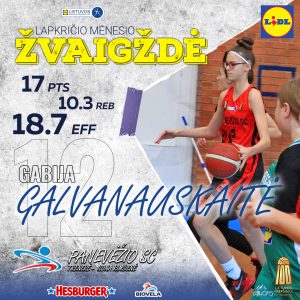 Lietuvos moksleivių krepšinio lyga (MKL) pristatė U14-U18 merginų lapkričio mėnesio simbolinį penketuką, į kurį, įvertinus puikius rezultatus, buvo atrinkta Panevėžio sporto centro trenerės Ilonos Rimšienės ugdytinė Gabija Galvanauskaitė. Įvykus balsavimui daugiausiai palaikymo balsų surinko ir lapkričio mėnesio MKL Žvaigžde tapo Gabija Galvanauskaitė.