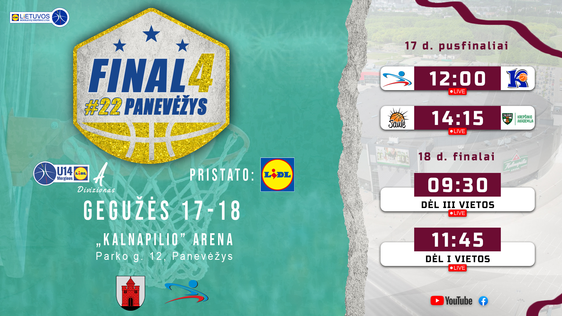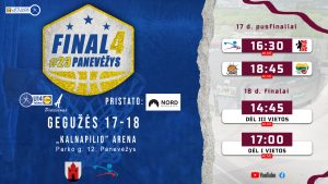 Gegužės 17 d., penktadienį, 12.15 val. „Kalnapilio“ arenoje bus duotas startas kovai dėl bilieto į finalą. Panevėžio sporto centro krepšinio trenerės Ilonos Rimšienės ugdytinės 14.15 val. susitiks V. Knašiaus KM I ekipą. Berniukų kovos startuos 16.30 val., kurias pradės trenerio Justo Četkausko ugdoma komanda. Į uostamiestį išvykusių U18 merginų kovų pradžia – 18.15 val. Panevėžio SC/RSSG komandos merginos susitiks su Vilniaus KM I ekipa.