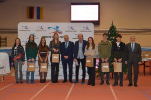 Lengvosios atletikos manieže pasveikinti Panevėžio sporto centro ugdytiniai – Lietuvos įvairaus amžiaus žaidynių prizininkai, šalies čempionai ir jų treneriai. Nugalėtojams įteiktos atminimo dovanos.