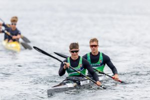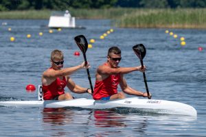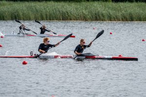 Keturviečių kanojų varžybose 500 metrų distanciją broliai Dovydas ir Danielius Gauriai kartu su irkluotojais iš Vilniaus ir Elektrėnų užėmė trečiąją vietą.