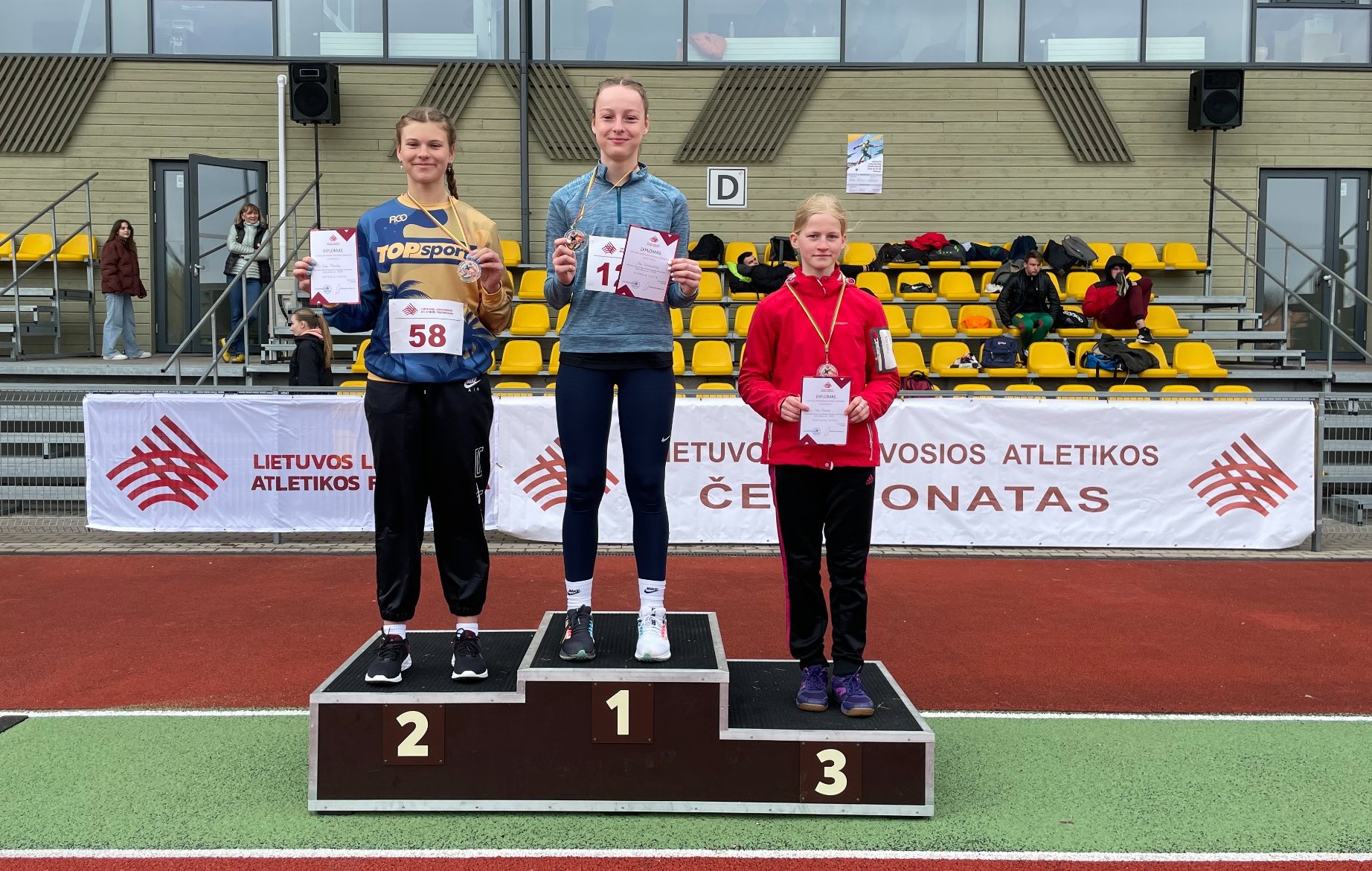 Ieties metimo jaunučių grupėje jėgas išbandė Urtė Šteinaitė, kuri geriausiu bandymu švystelėjusi ietį 29,59 m užėmė trečią vietą. Kūjo metimo rungtyje jaunučių grupėje taip pat trečią vietą laimėjo Paulius Binkis, jis kūją nusviedė 41,38 m.